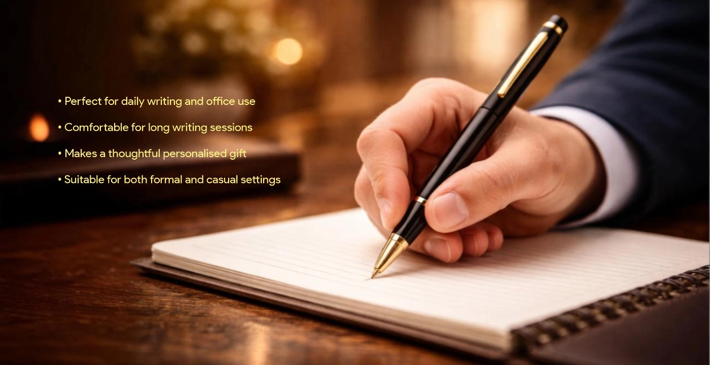 Experience the pinnacle of luxury with a writing instrument that doubles as a piece of art. This exquisite ballpoint pen features a transparent upper barrel filled with suspended 24K-style gold leaf flakes that shimmer beautifully with every movement. Complemented by a sleek, matte gold metallic body and a polished gold-tone clip, this pen is designed for those who want their signature to leave a lasting impression. Personalize it with custom laser engraving to create a truly bespoke gift for a milestone celebration or professional achievement.